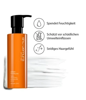 „Pflegender Conditioner für langanhaltende Geschmeidigkeit und Glanz. Für trockenes Haar, das urbanen Angriffen ausgesetzt ist. Mit Moringa- und Rotalgenextrakten angereichert. Versorgt das durch eine urbane Lebensweise geschwächte Haar langanhaltend mit Feuchtigkeit. Für gesund aussehendes Haar und ein seidiges Haargefühl.